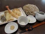 |  昔ながらの天ぷら蕎麦 1,550円 バナメイエビのマハラジャの海老の天ぷらをかけ蕎麦の上に2尾のせた昔懐かしいお蕎麦屋さん定番の温かい天ぷら蕎麦です。